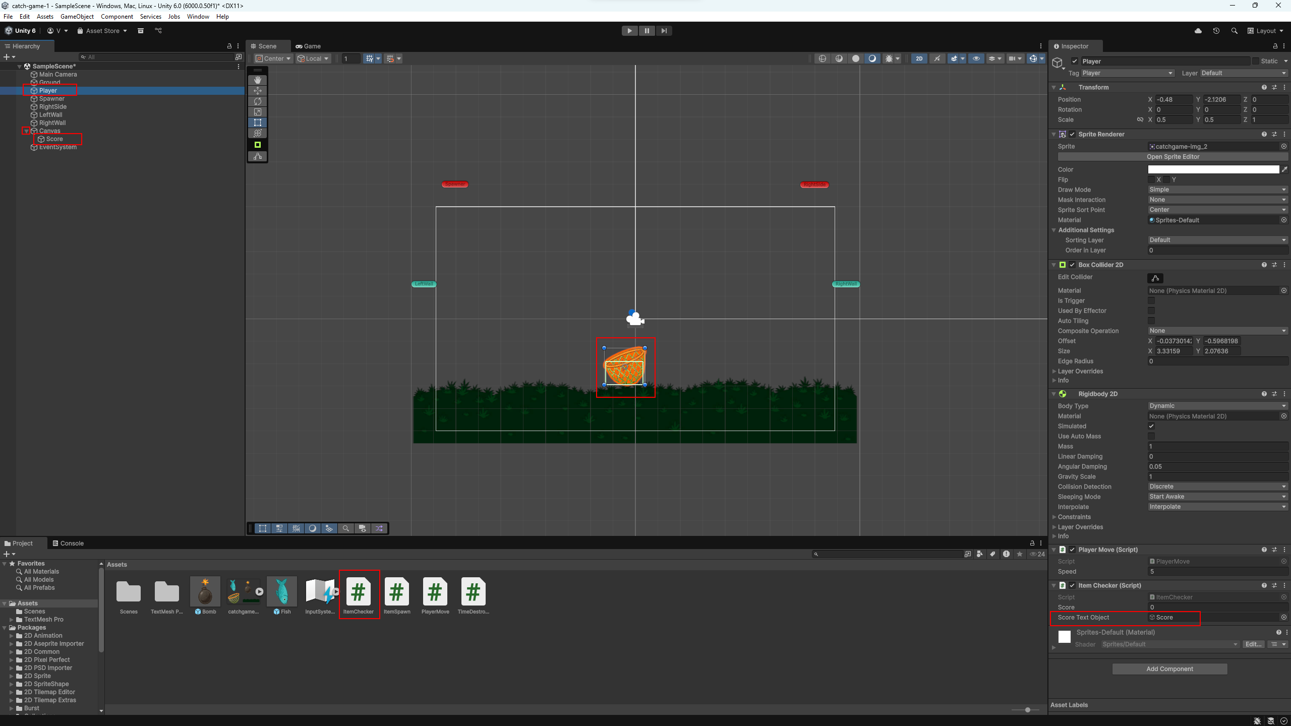 Ok, let's go. Start Unity and open the Catch Game project you created in Part 1. You can find your scene in the Assets window and double-click to load it. If you missed Part 1, you can 🎣go back and follow it here🎣.