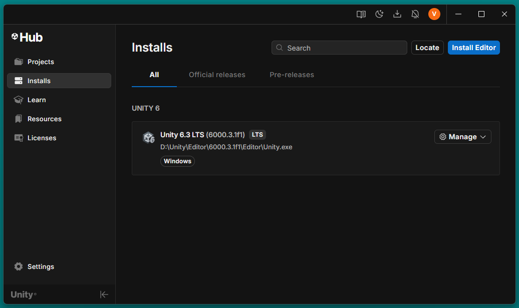 ๐ก In this tutorial, we use Unity 6 LTS โ a stable version with long-term support. It is well suited for learning and will be used in all upcoming lessons.